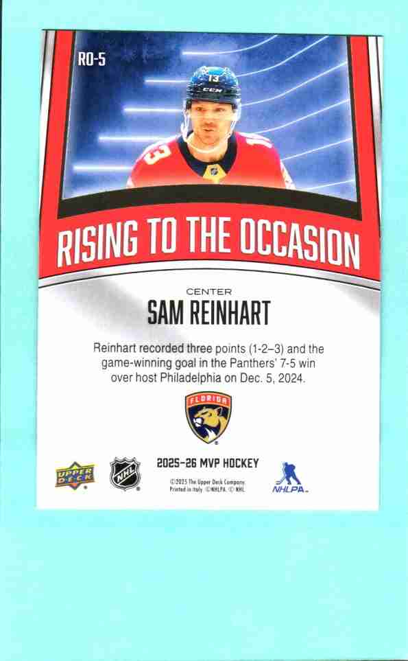 Sam Reinhart #RO-5 2025 Upper Deck MVP Rising to the Occasi