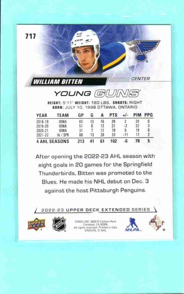 William Bitten #717 2022 Upper Deck RC Young Guns