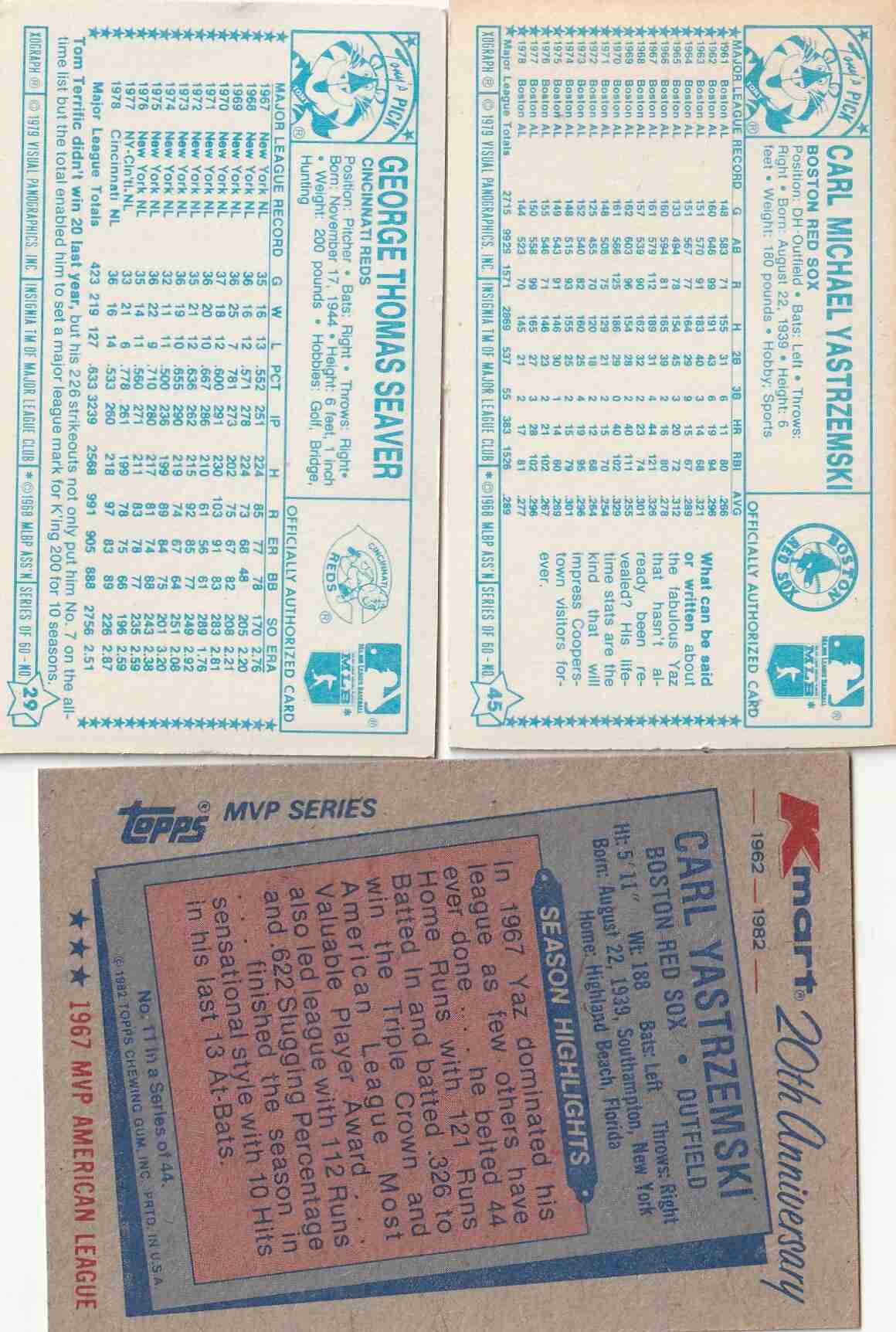 KMart 20th Anniversary Topps MVP Series Yaz (NM/M) 2-Kellogg 3-D Super Stars Yaz and Seaver (EX/EX+)