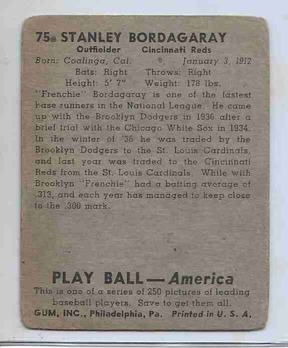 1939 Play Ball #75 ~ Stanley Bordagary Cincinnati Reds