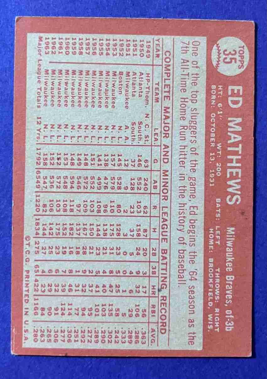 64 Topps EDDIE MATHEWS #35 HOF!