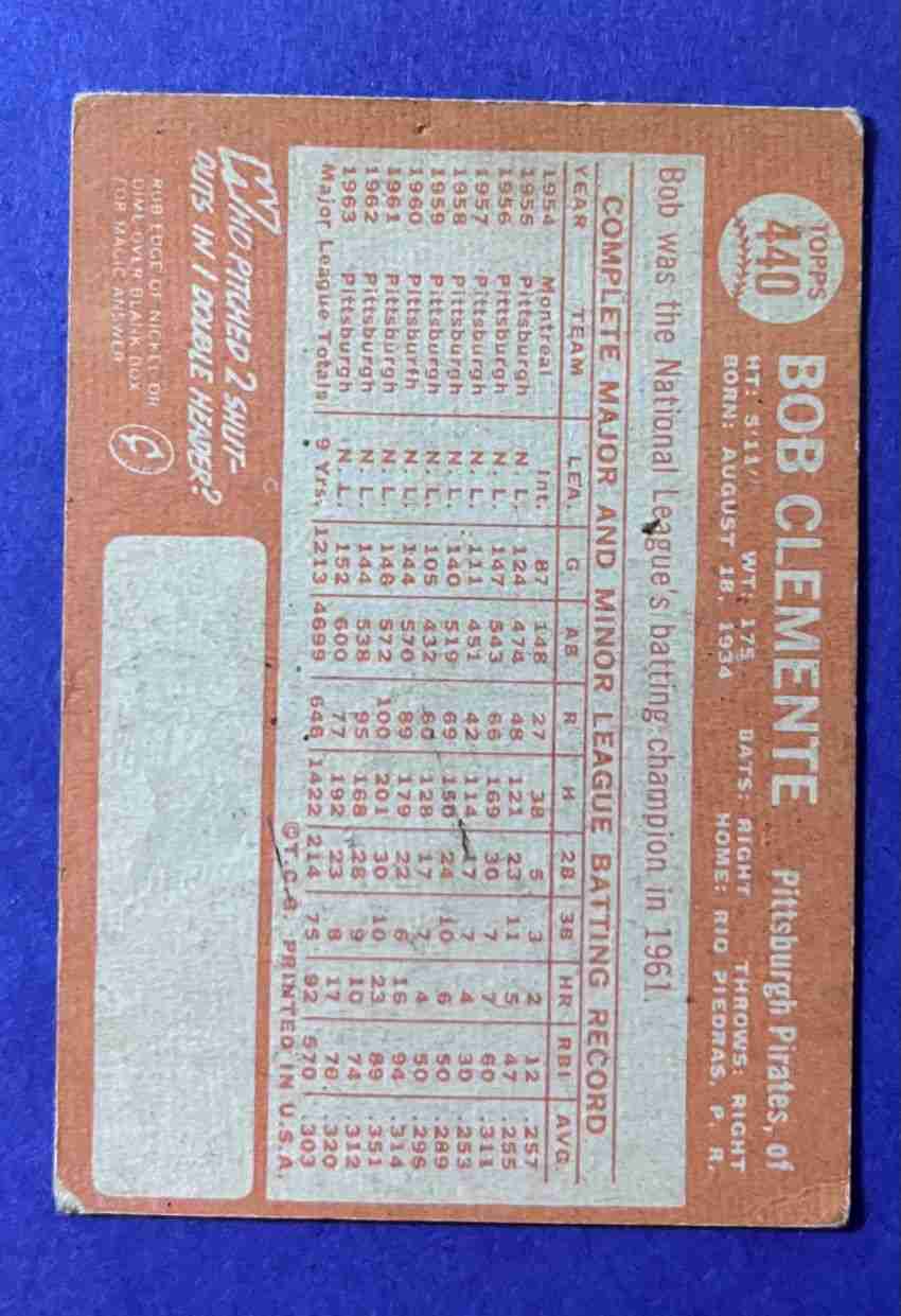 64 Topps ROBERTO CLEMENTE #440 HOF!