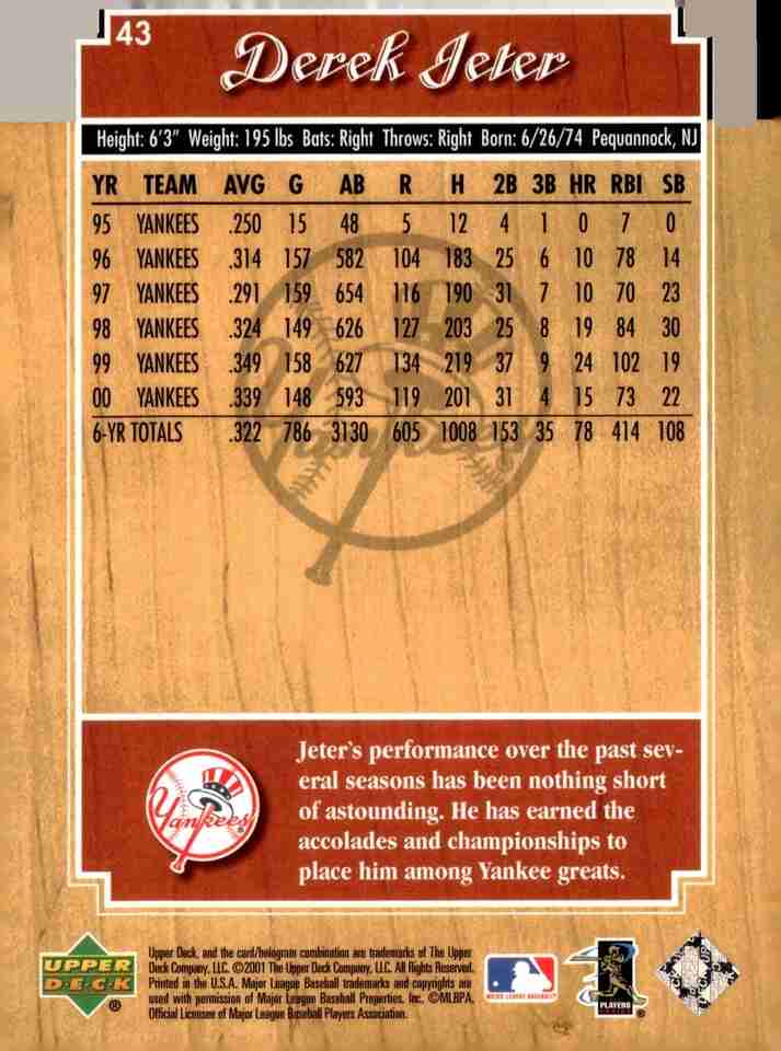 2001 Upper Deck Legends #43 Derek Jeter