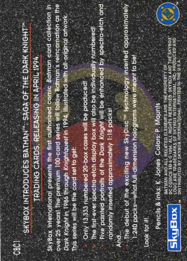 1994 Skybox Saga of The Dark Knight Promo Batman