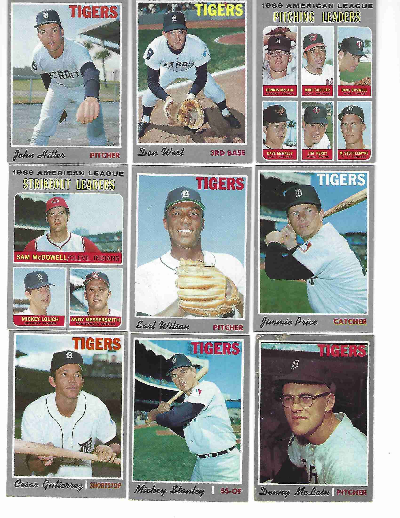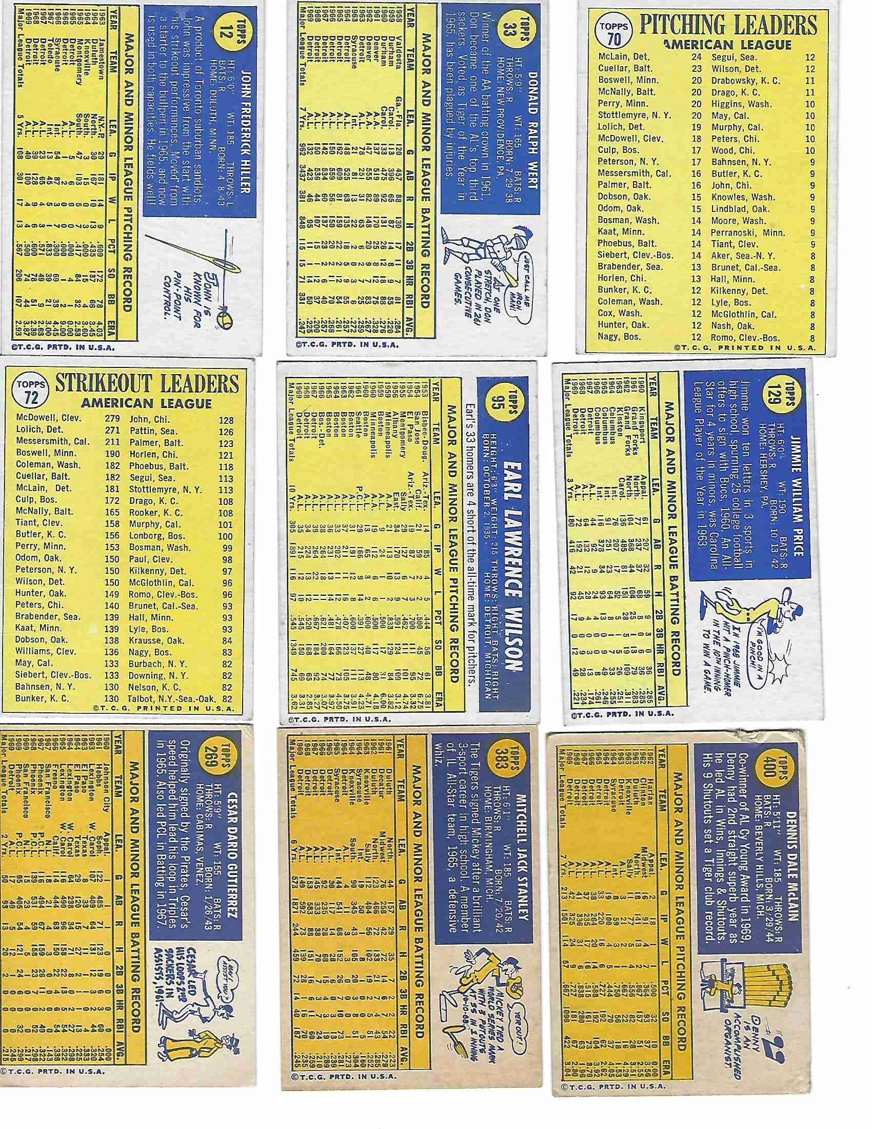 1970 TOPPS 9 CARD DETROIT TIGERS LOT