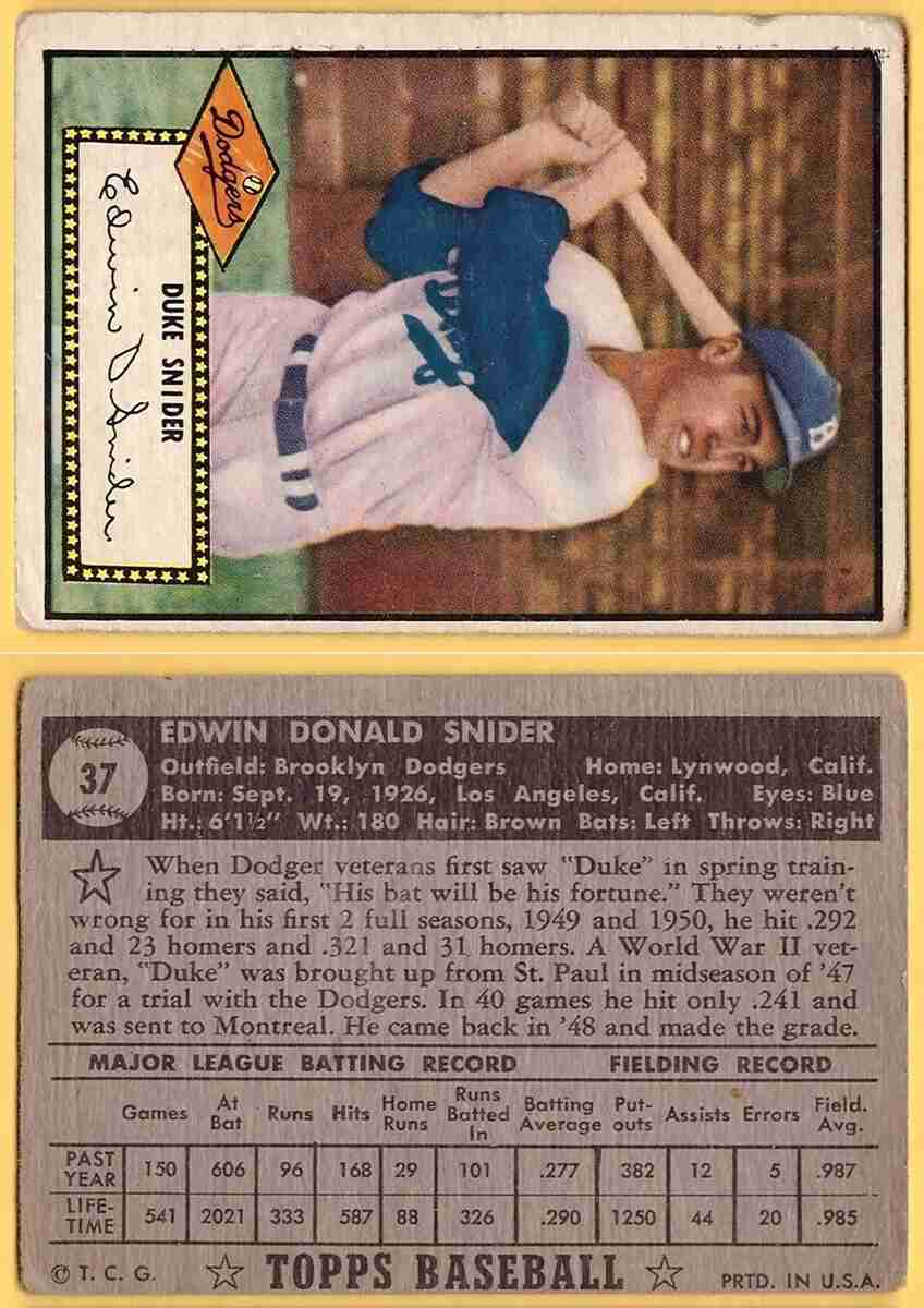 1952 Topps #37 Duke Snider [SL216] refer to pictures for condition/grade of card =====================================================