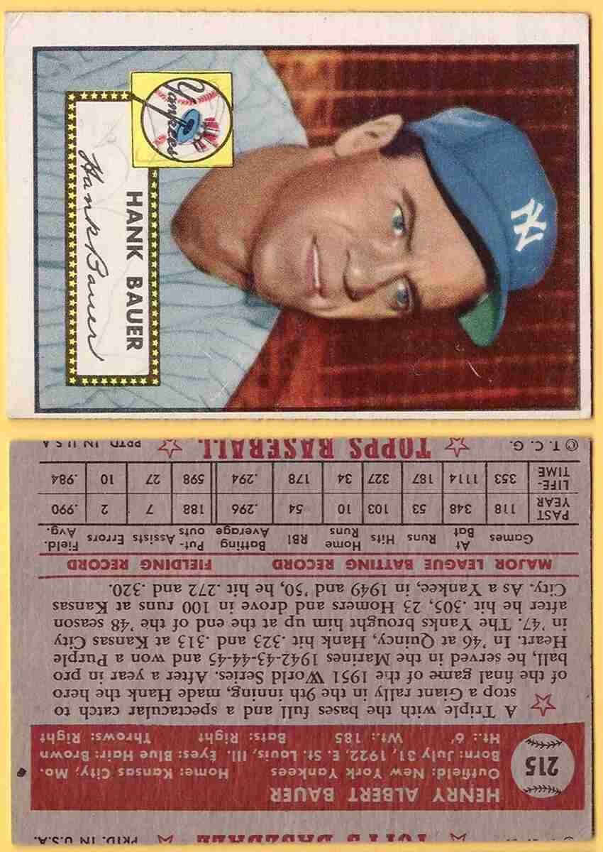 1952 Topps #215 Hank Bauer [SL217] refer to pictures for condition/grade of card =====================================================