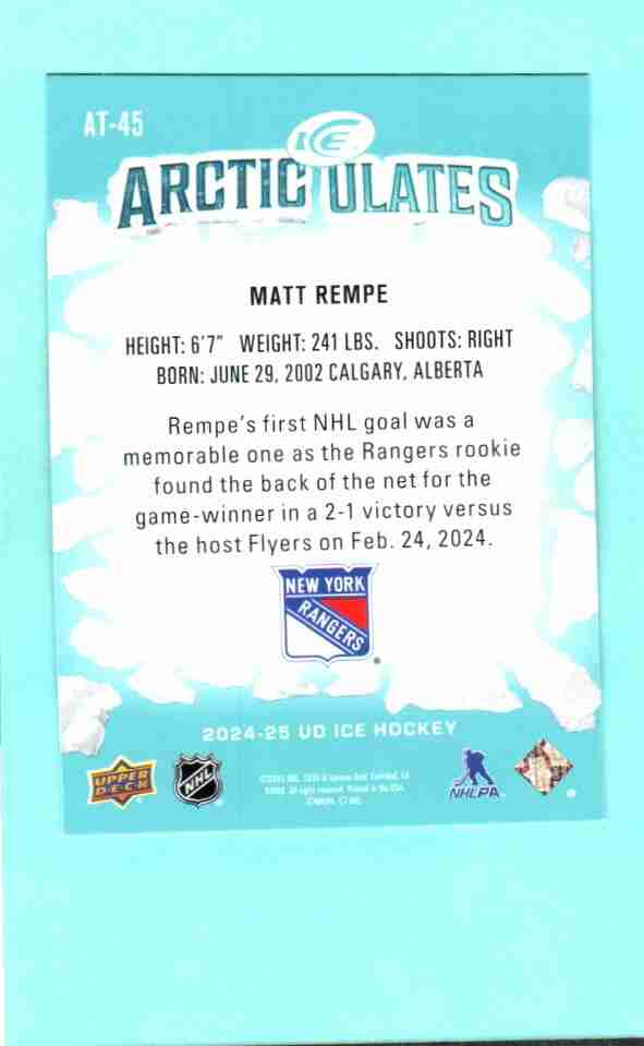 Matt Rempe #AT-45 2024 Upper Deck Ice Arcticulates