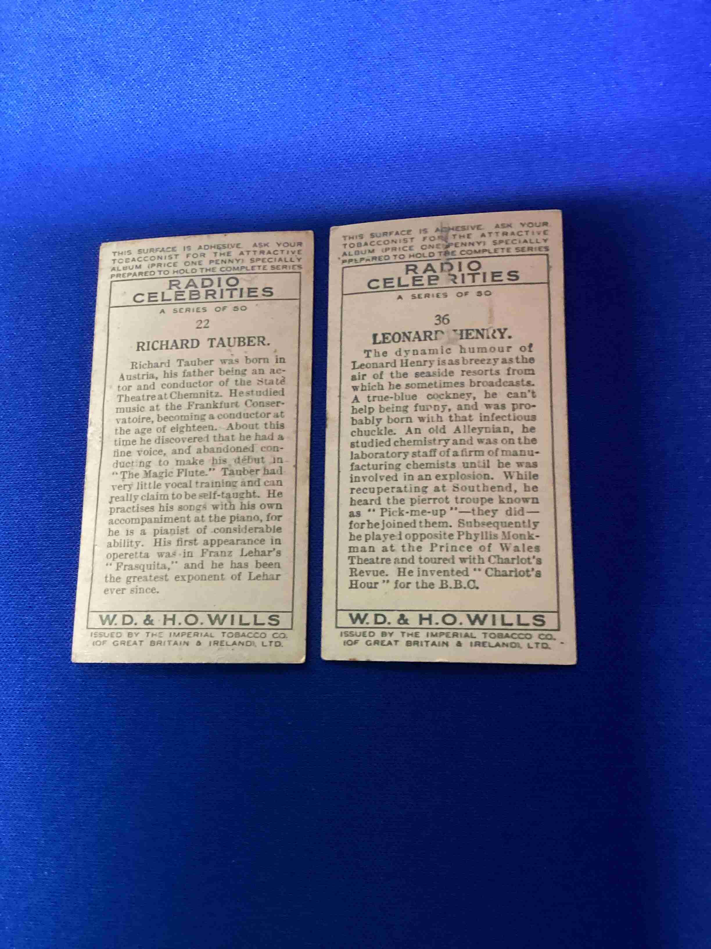 Lot of 2 1934 Will’s Radio Celebs