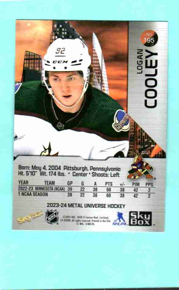 Logan Cooley #195 [Rookie] 2023 SkyBox Metal Universe
