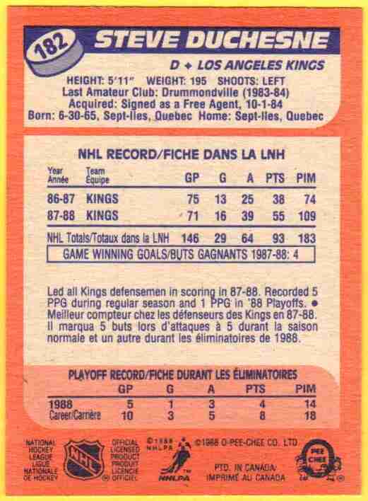 Steve Duchesne #182 [Rookie] 1988 O-Pee-Chee