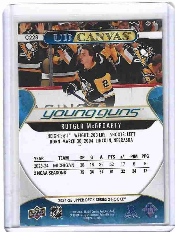 2024/25 UD 2 C 228 RUTGER McGROARTY YOUNG GUNS CANVAS