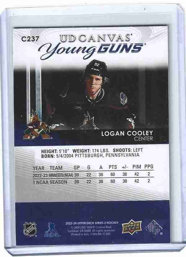 2023/24 UD 2 C237 LOGAN COOLEY YOUNG GUNS CANVAS