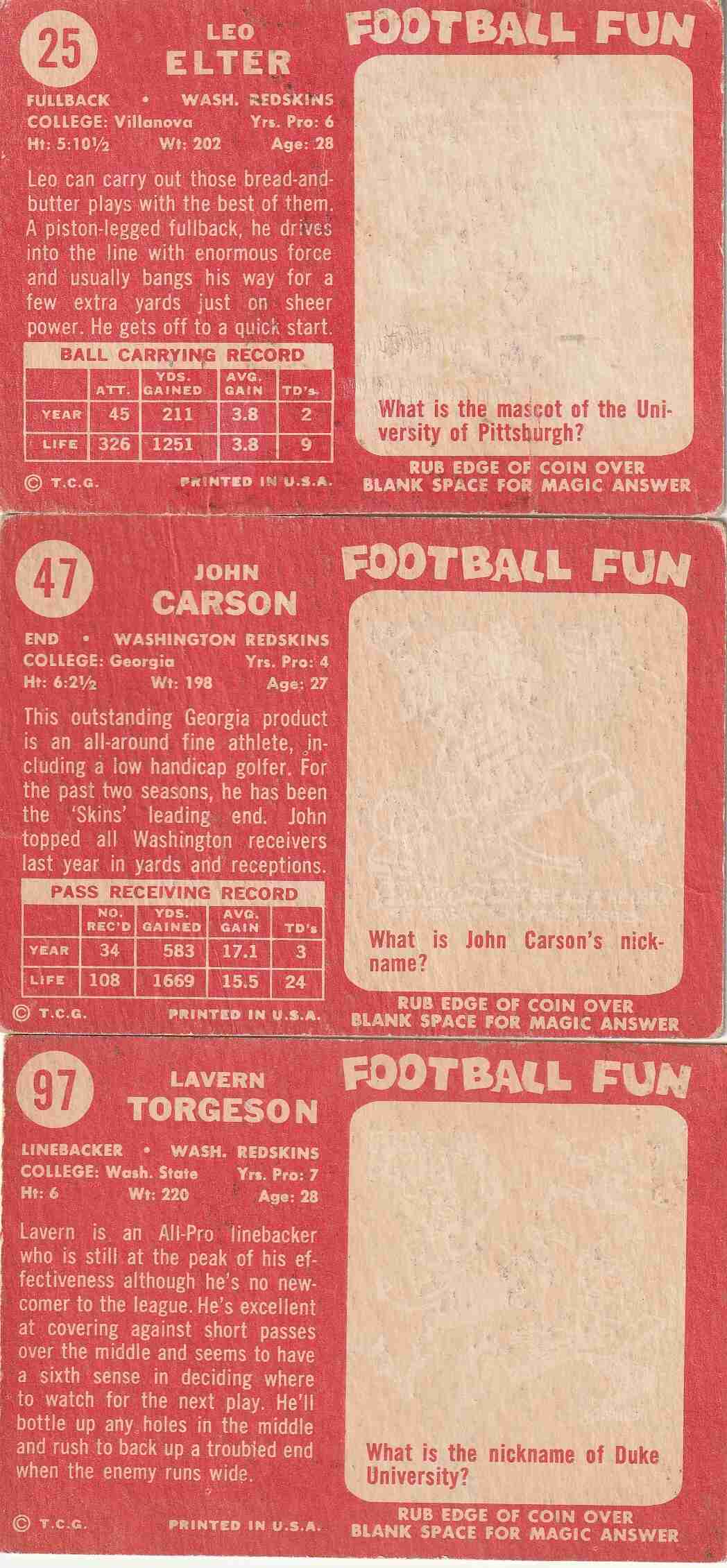 3-1958 Topps Washington Redskins #'s 25 47 97