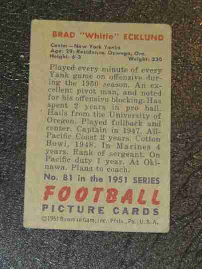 1951 Bowman #81 Brad "White" Ecklund - F/G - BV $20
