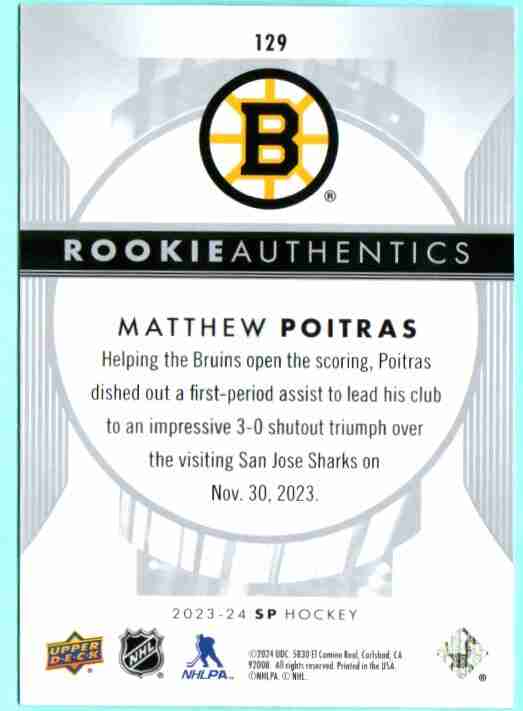 Matthew Poitras 2023-24 Upper Deck SP Rookie Authentics Si