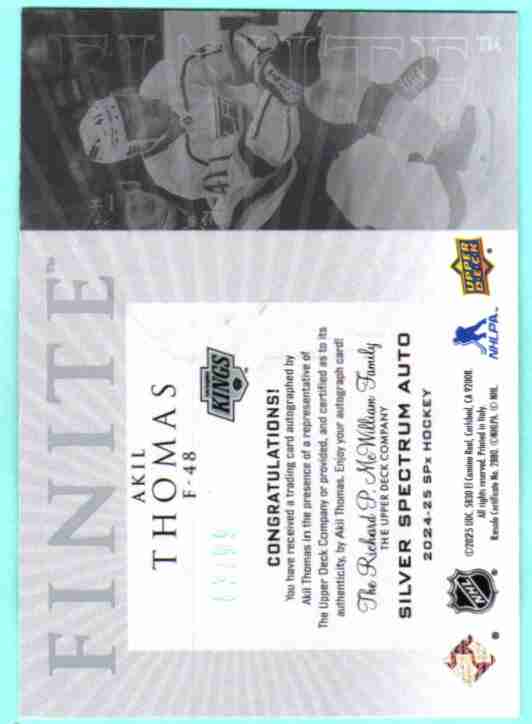 AKIL THOMAS ROOKIE AUTO 2024-25 SPx FINITE 83/99 SILVER SPECTRUM AUTOGRAPH #F-48