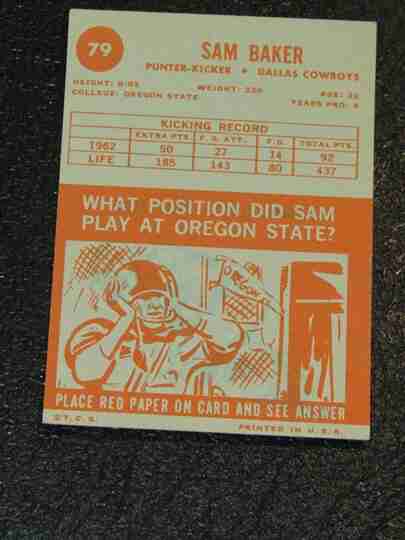 1963 Topps #79 Sam Baker SP - EX/EX+- BV $6