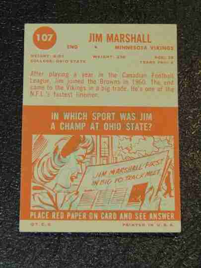 1963 Topps #107 Jim Marshall RC - VG/VG+- BV $40