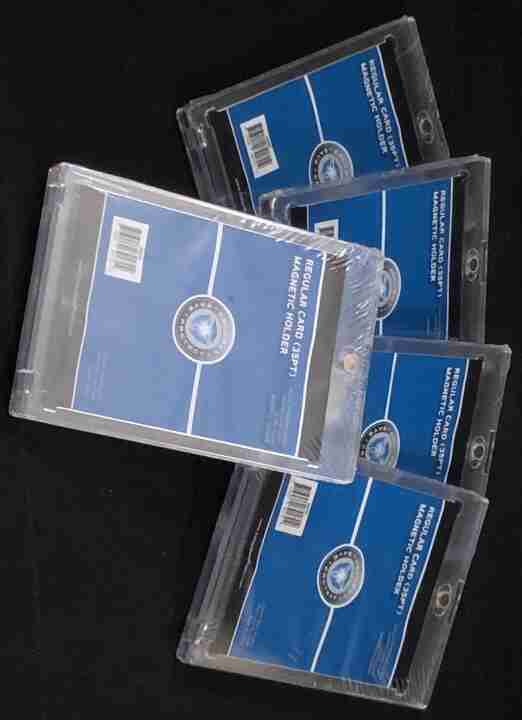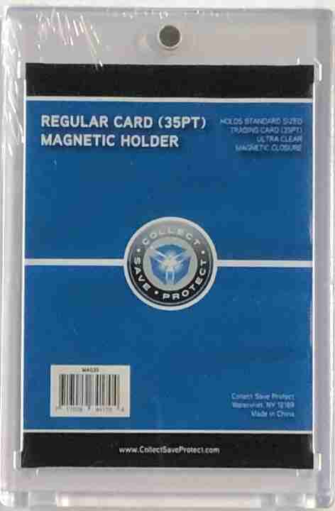 10 count lot of COLLECT*SAVE*PROTECT ~ MAG35 ~ 35 POINT Magnetic Card Holder - Regular Card - Holds standard trading cards (35pt) - Features gold magnet that provides a super-strong enclosure - Recessed "arrowhead" corners to protect the card's corners ~ UV PROTECTION - Outside dimensions(inches): .32x2.925x4.345 - Inside dimensions (card fit): .035x2.520 x3.528 ~ Card depicted in holder for demo purposes not included