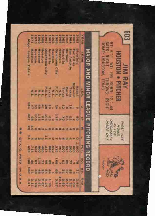 1972 Topps Semi Hi # 603 JIM RAY Astros