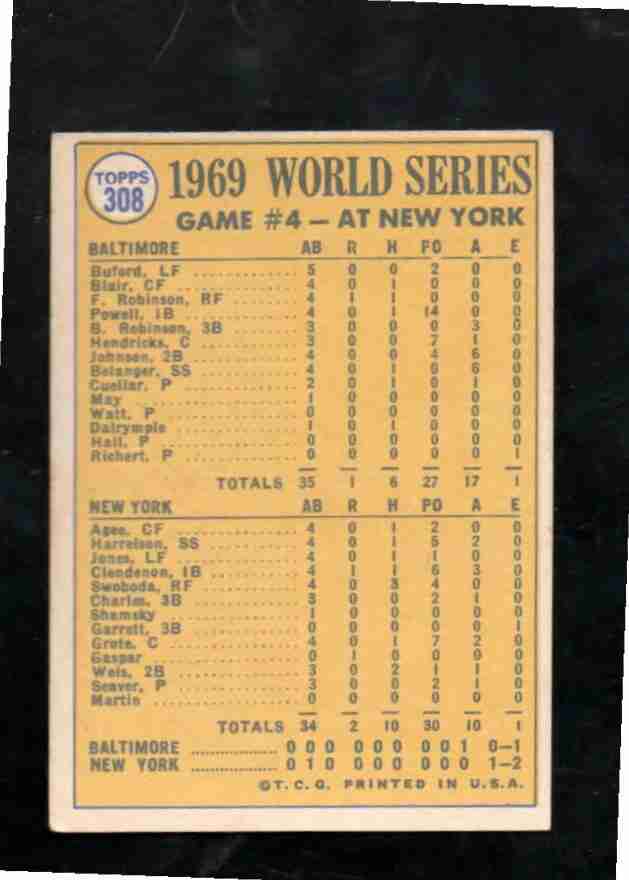 1970 Topps #308 1969 World series Game #4 Martin's Bunt