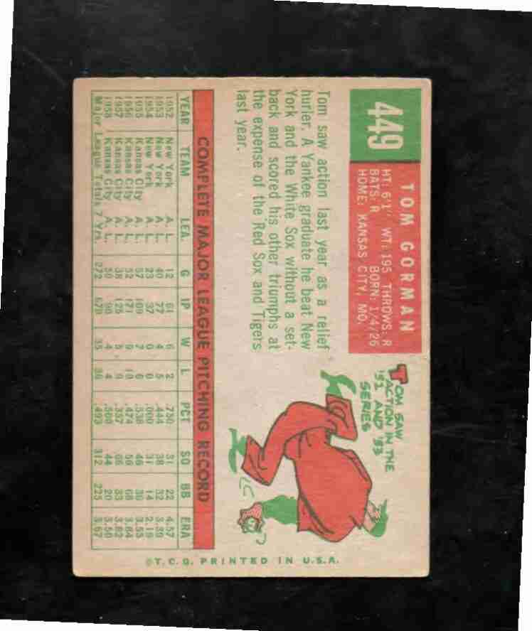 1959 Topps # 440 TOM GORMAN KC Athletics
