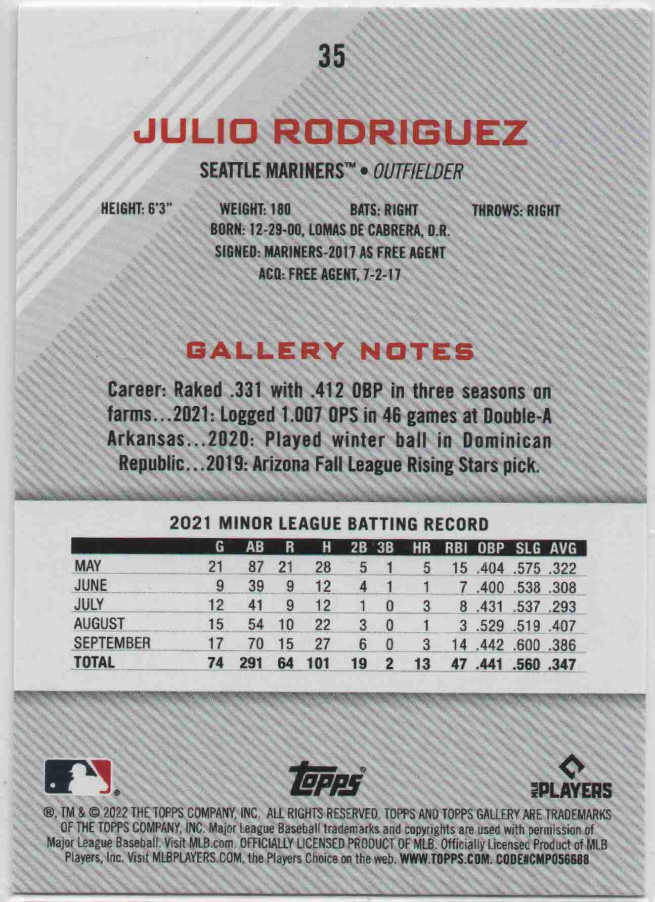 Julio Rodriguez 2022 Topps Gallery #35 Rookie