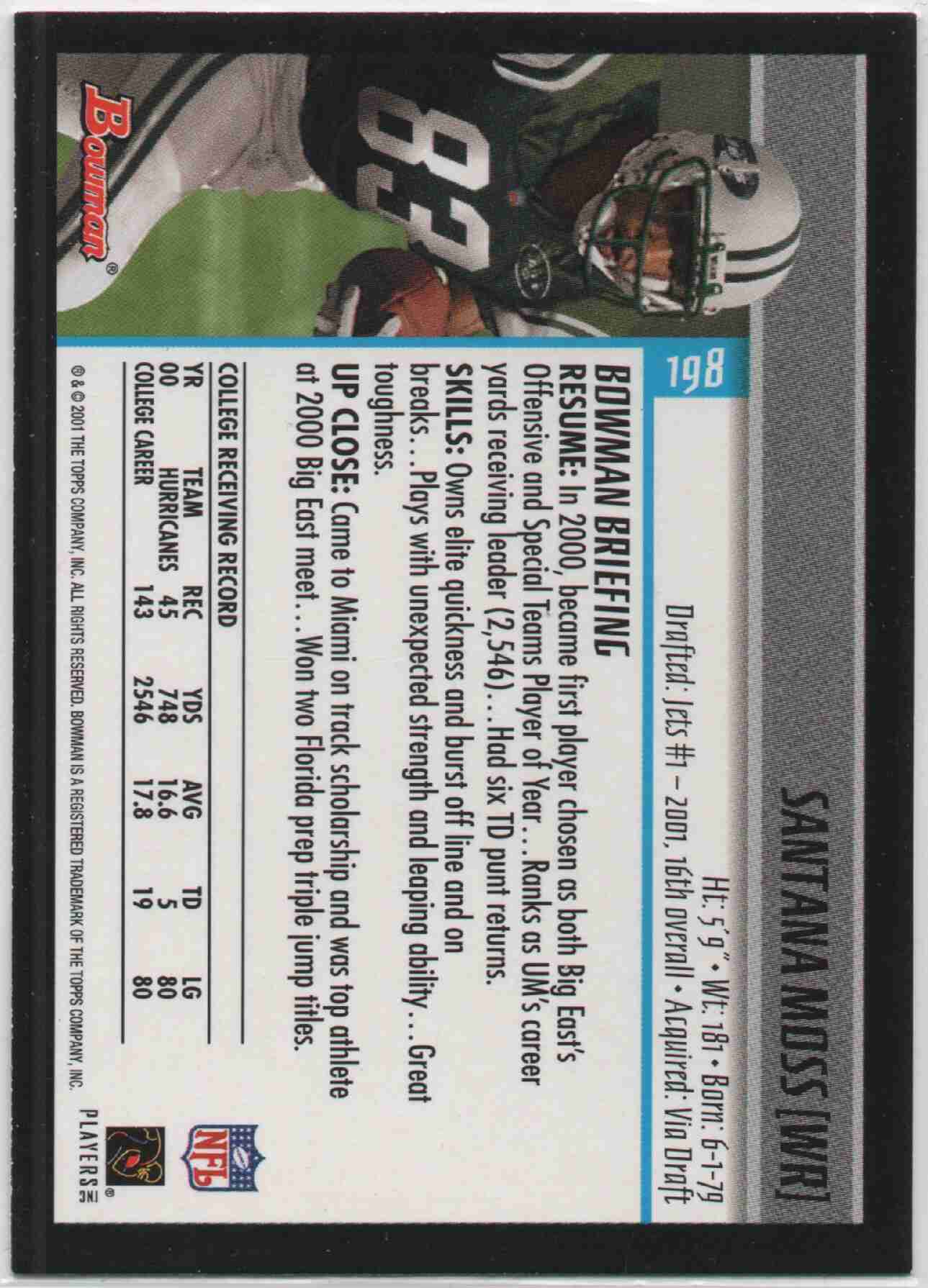 Santana Moss 2001 Bowman #198 Gold Parallel Rookie