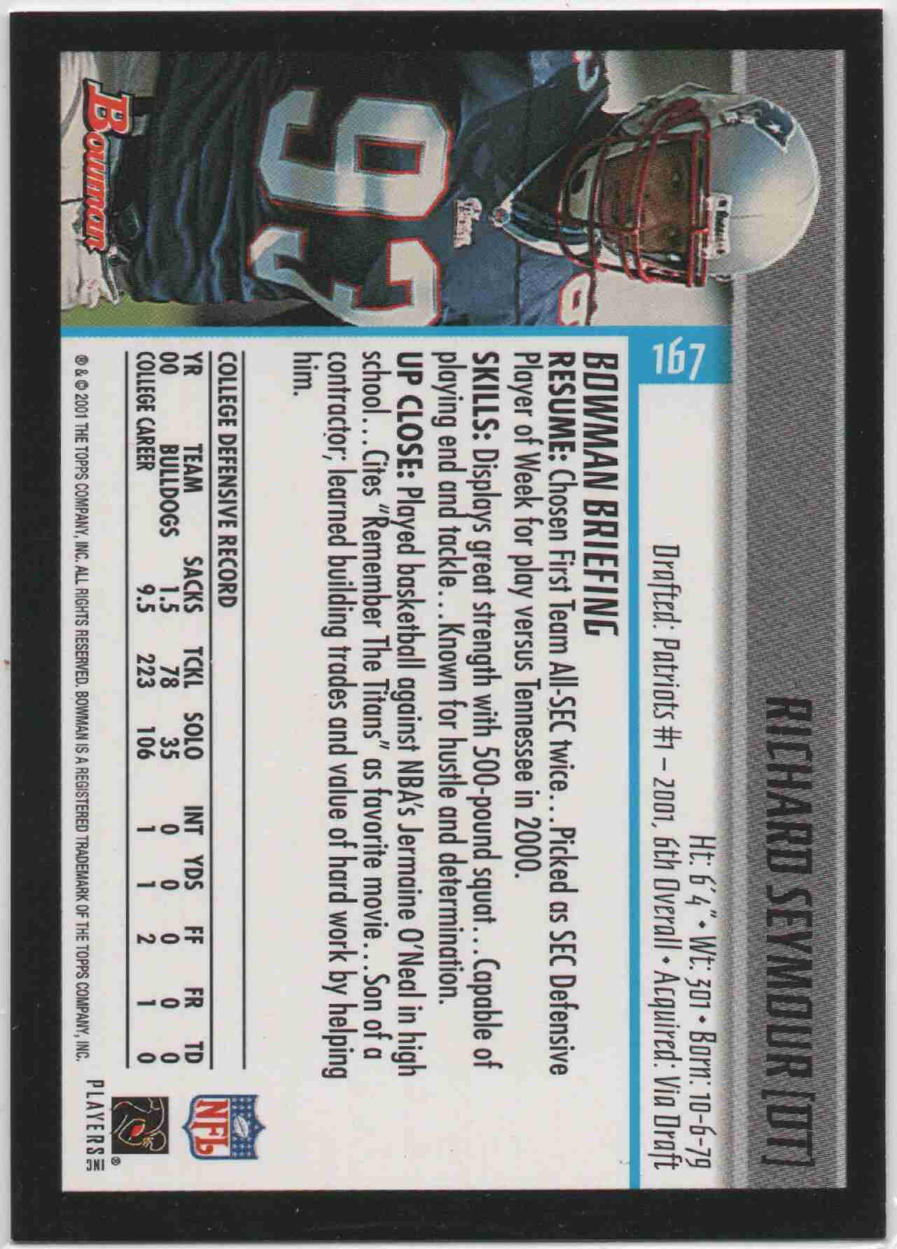 Richard Seymour 2001 Bowman #167 Rookie