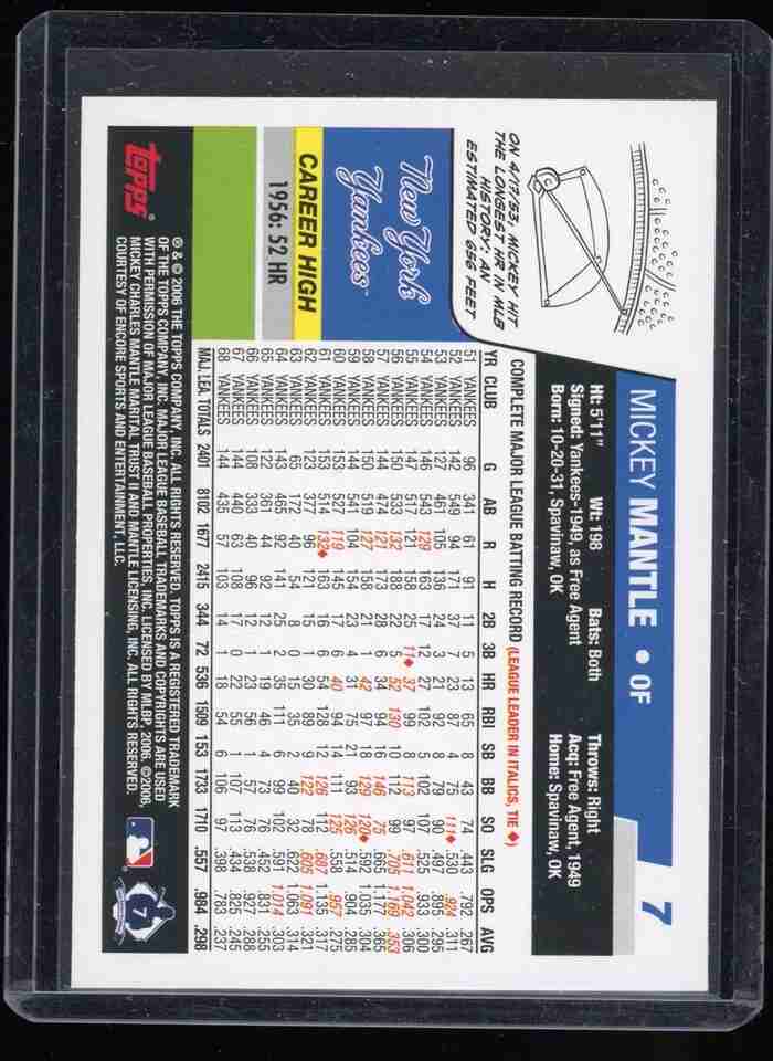 MICKEY MANTLE 2006 TOPPS BASEBALL CARD #7