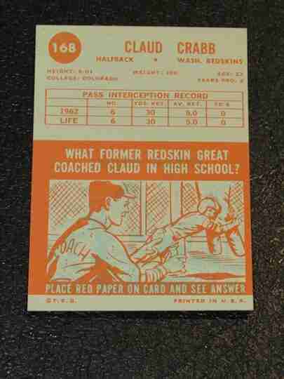 1963 Topps #168 Claud Crabb SP - VG+/EX - BV $6
