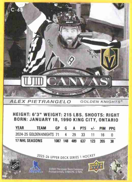 2025 Upper Deck UD Canvas – Alex Pietrangelo #C-63 (Black & White).