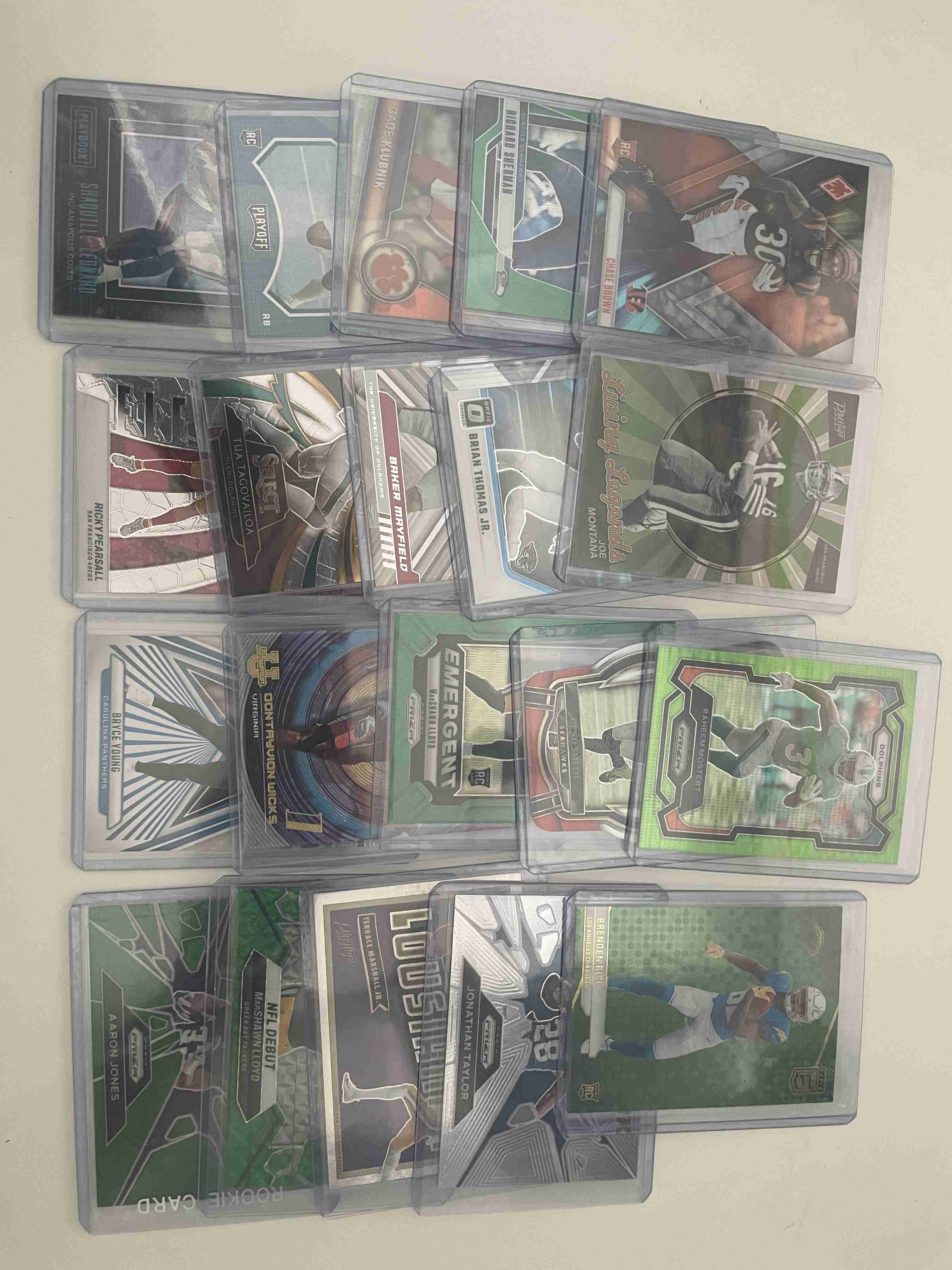 NFL Lot of 20. Dies Cuts RC and Stars You get all the cards in the picture. Rookies color and inserts Shipped in Toploaders.