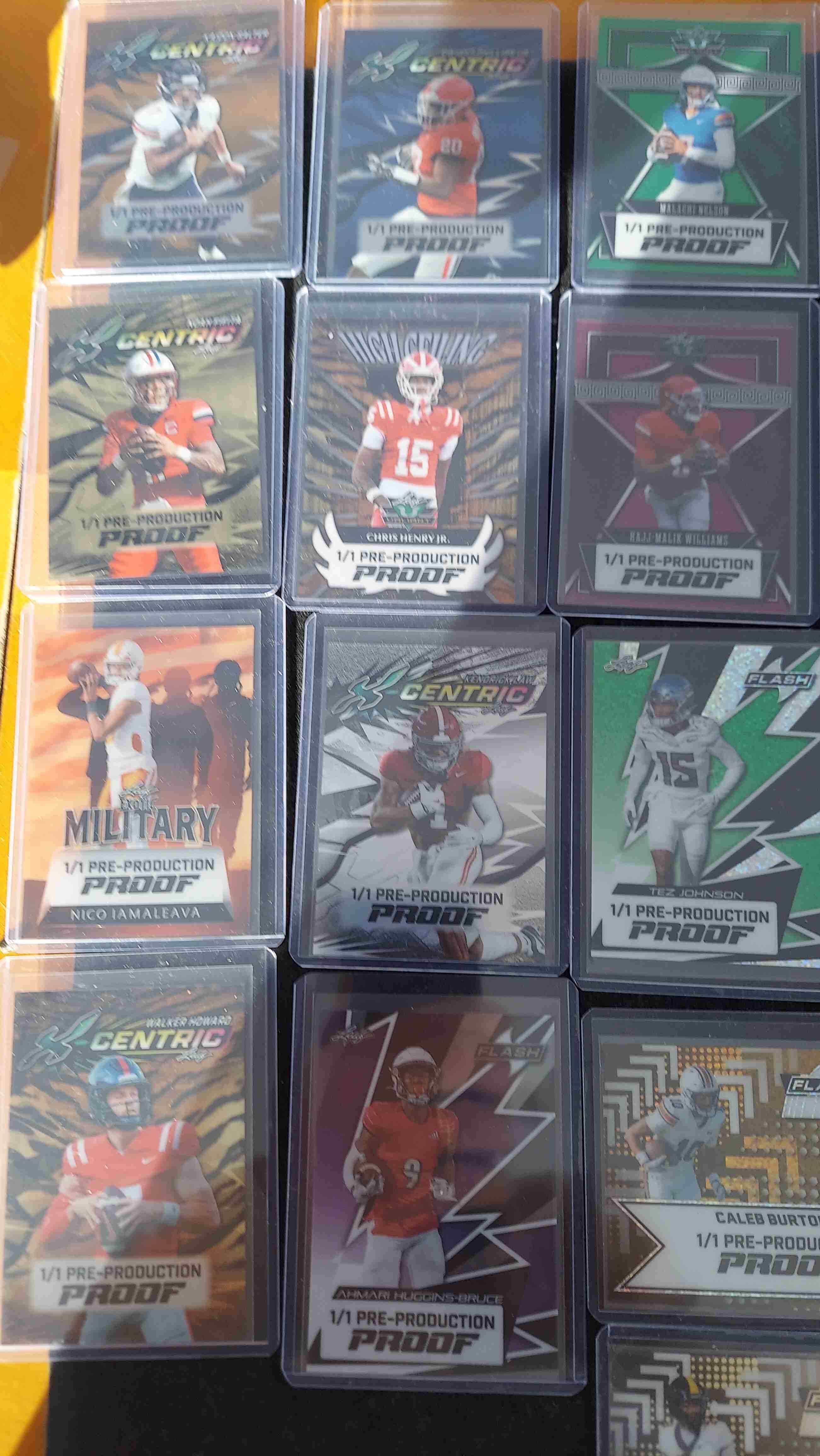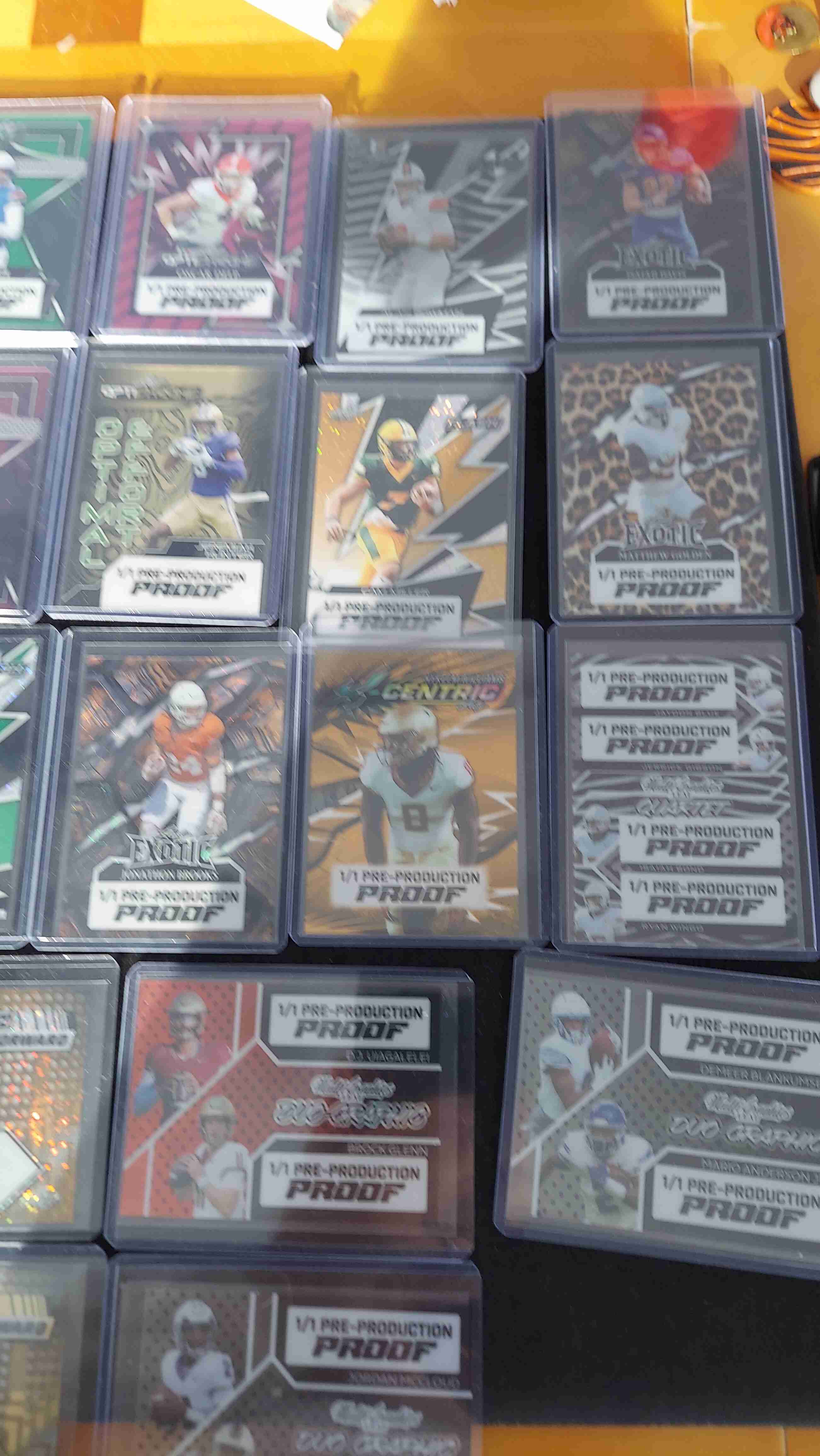 25 football 1 of 1 Preproduction proof leaf cards all pictu