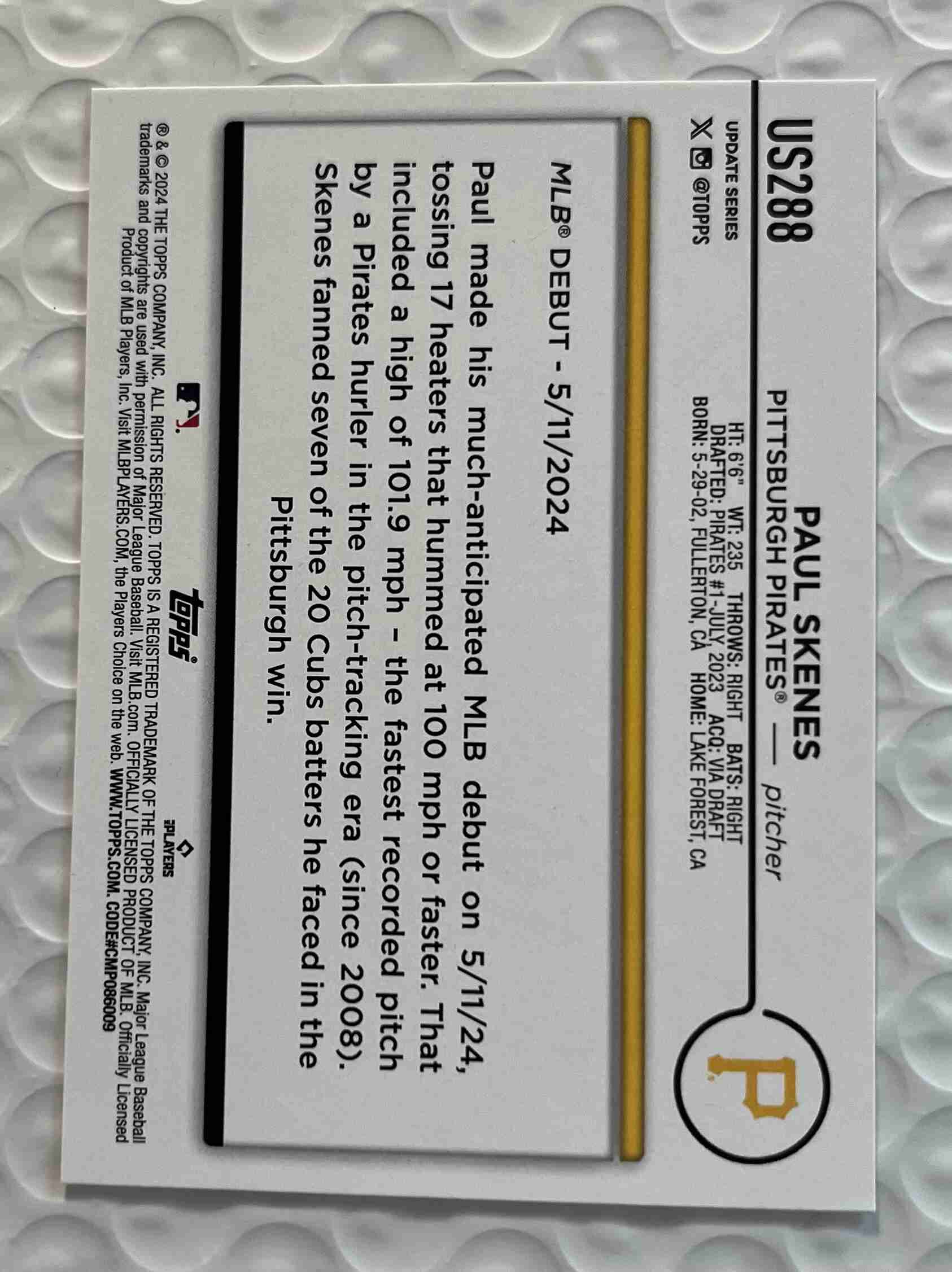 2024 Topps Update Paul Skenes Rookie Card