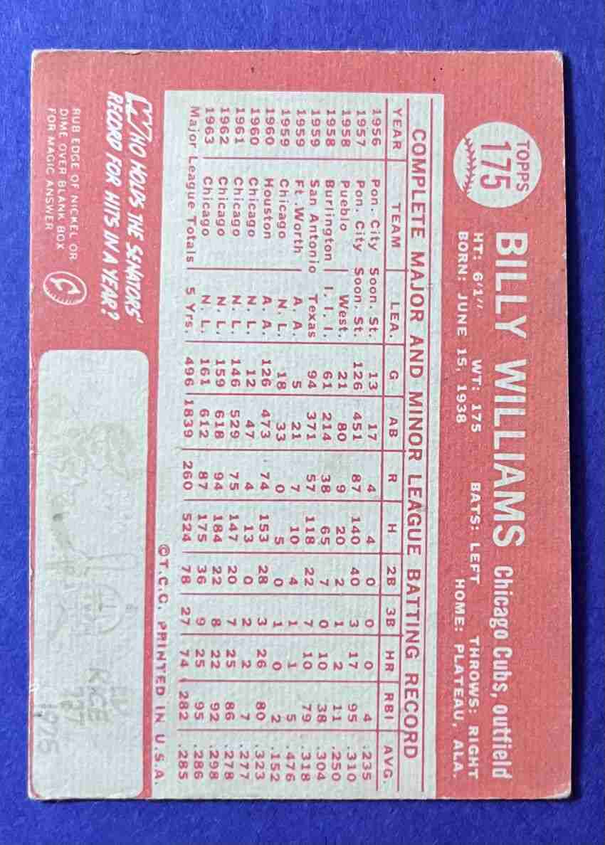 64 Topps BILLY WILLIAMS #175 HOF!
