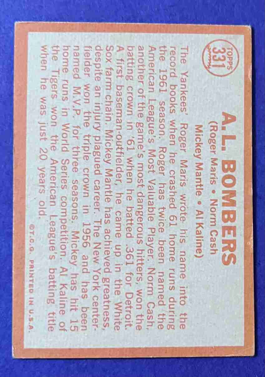 64 Topps AL BOMBERS #331 HOFx2!
