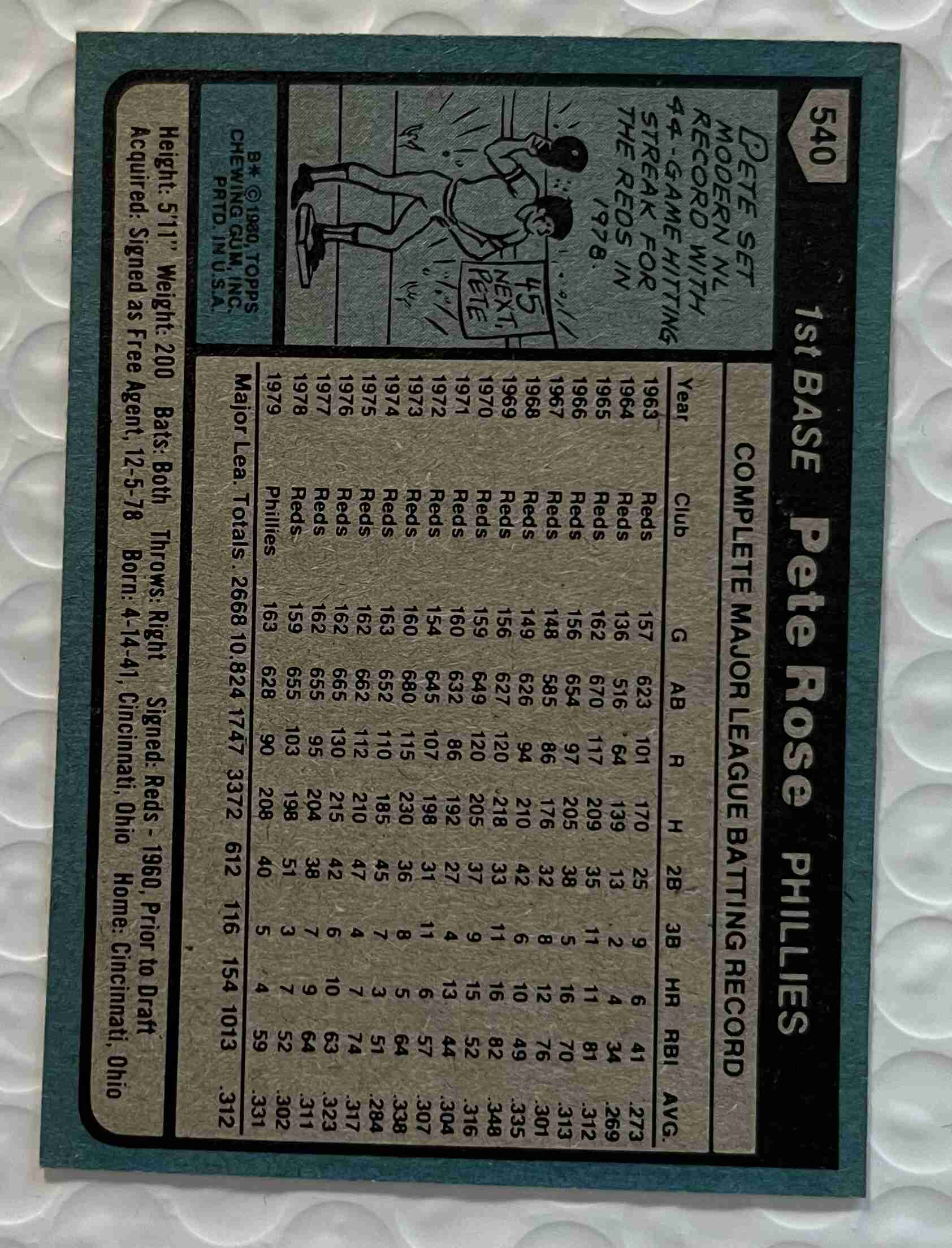 1980 Topps Pete Rose Card