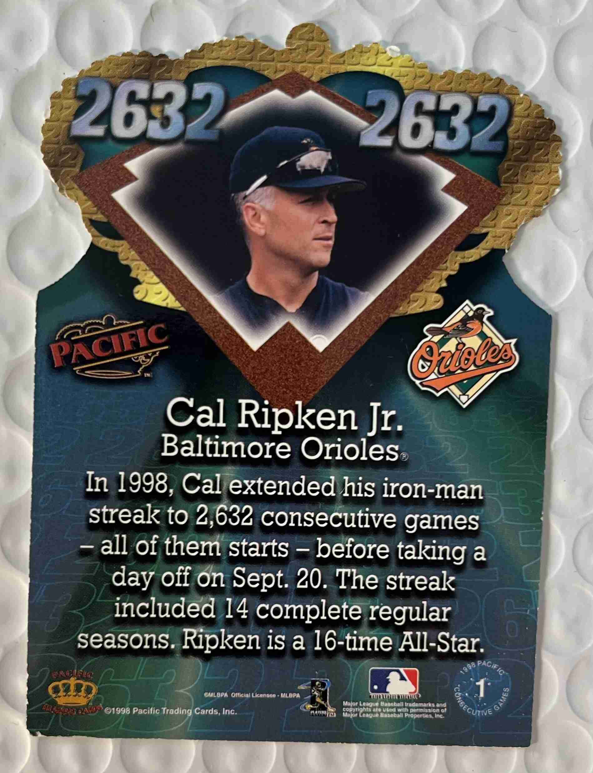 1998 Pacific Cal Ripken Gold Crown Die-Cut Insert Card