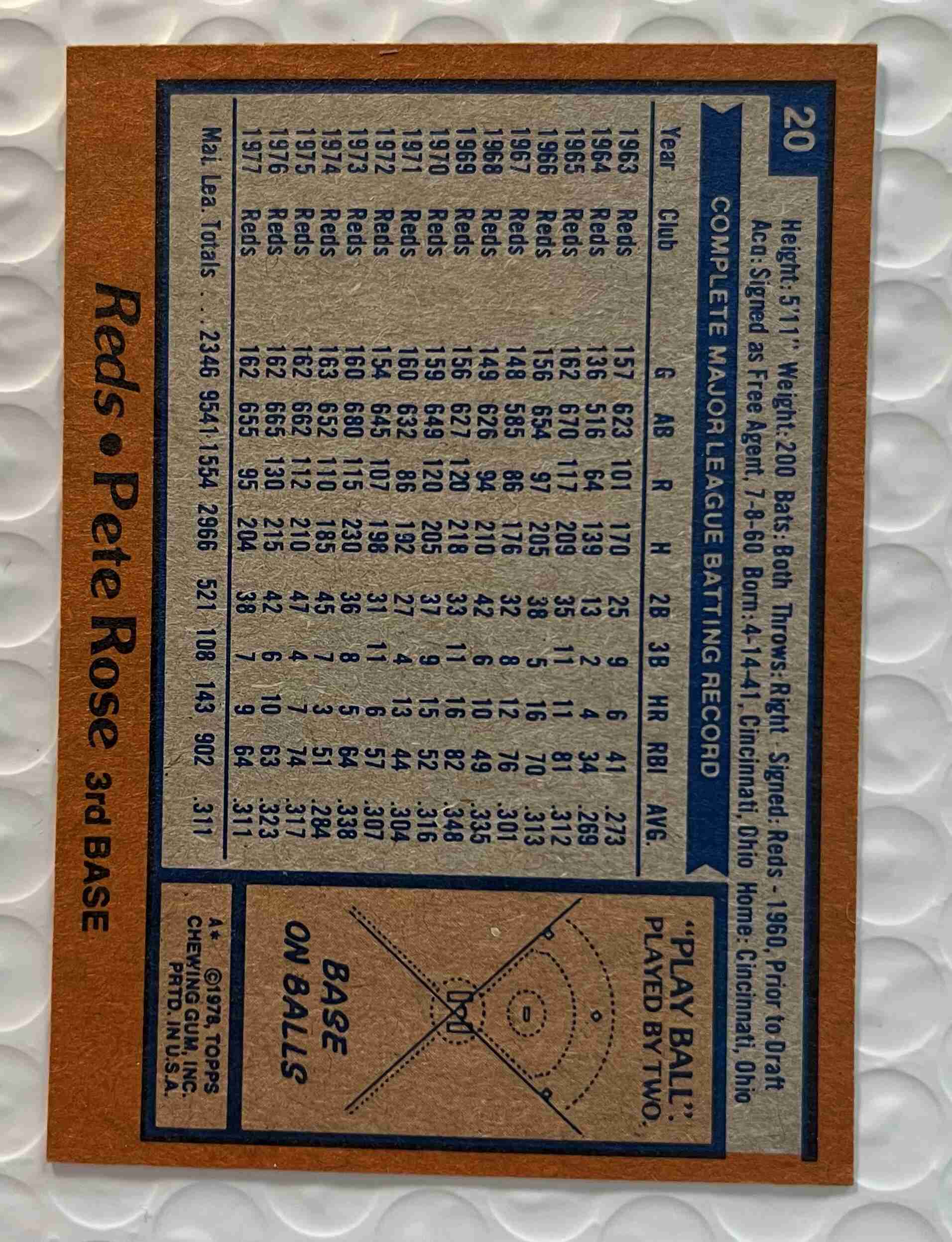 This auction is of a 1978 Topps Pete Rose card. Card is in Ex to Nrmt condition. Look at the pics and judge for yourself. If any questions please feel free to contact me. Thank you for looking at my auctions.
