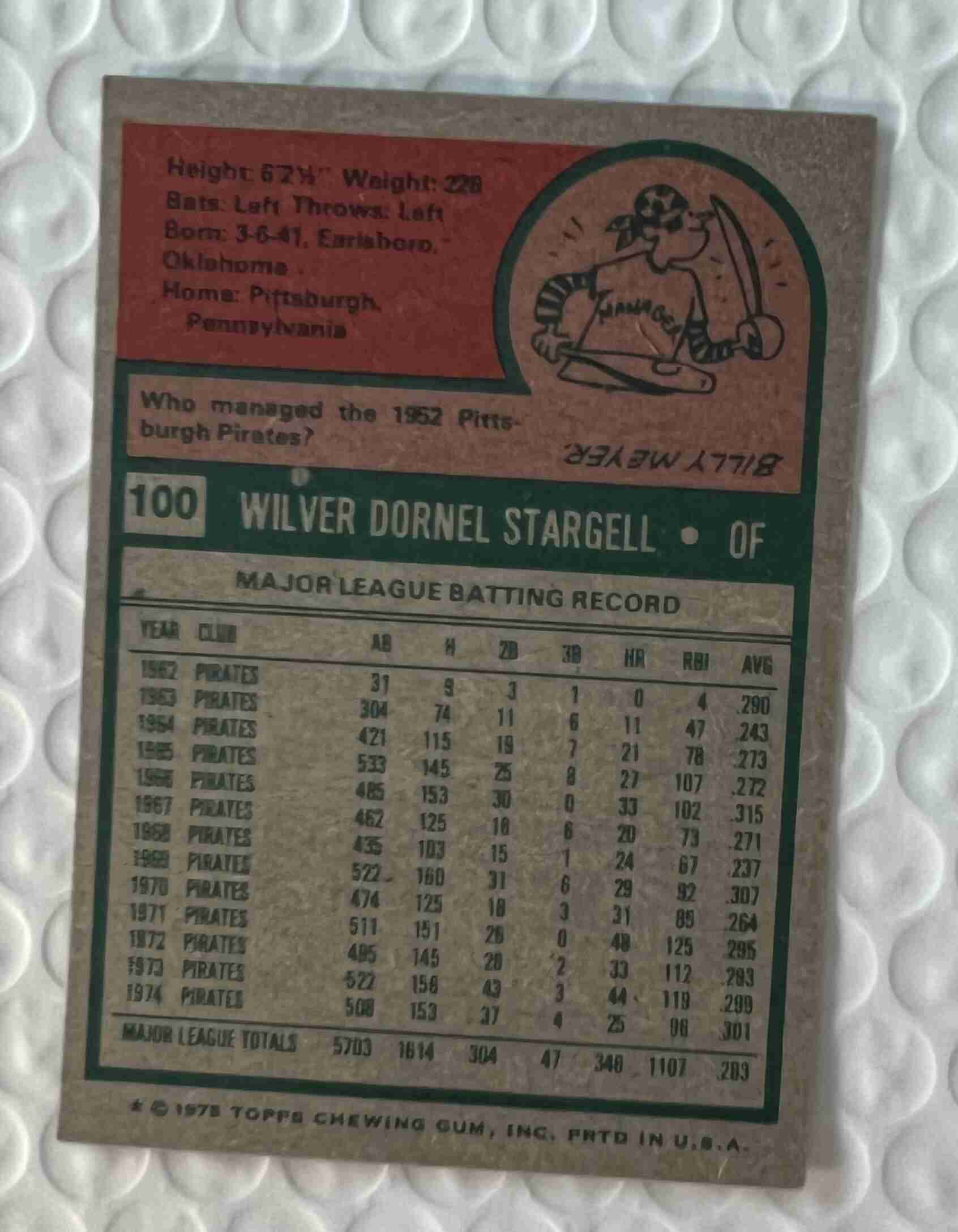 1975 Topps Willie Stargell Card