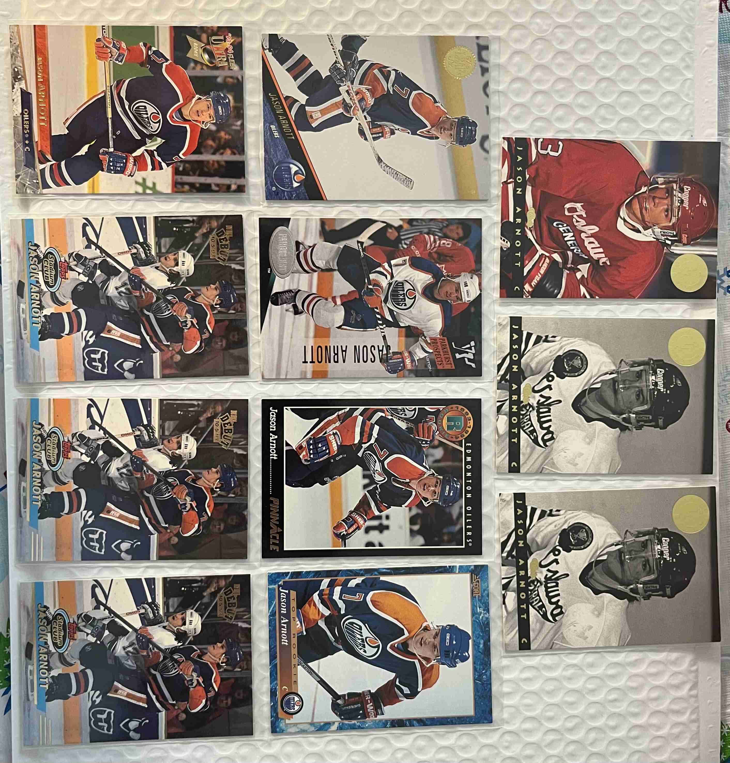 This auction is of ( 11 ) Jason Arnott Rookie cards ( there are doubles ). Cards are in Nrmt condition. Look at the pics and judge for yourself. If any questions please feel free to contact me. Thank you for looking at my auctions.