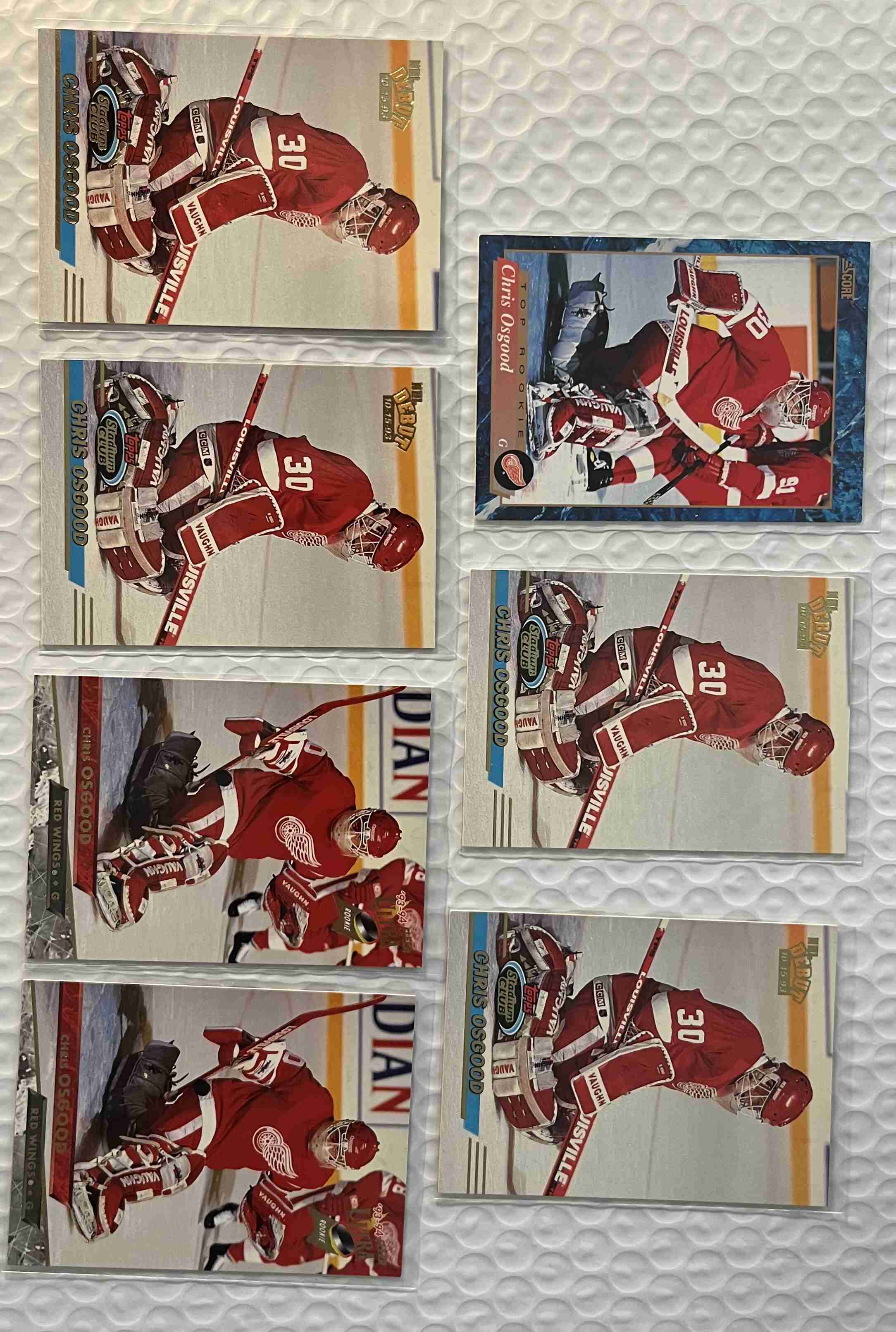 This auction is of ( 7 ) Chris Osgood Rookie cards ( there are doubles ). Cards are in Nrmt condition. Look at the pics and judge for yourself. If any questions please feel free to contact me. Thank you for looking at my auctions.