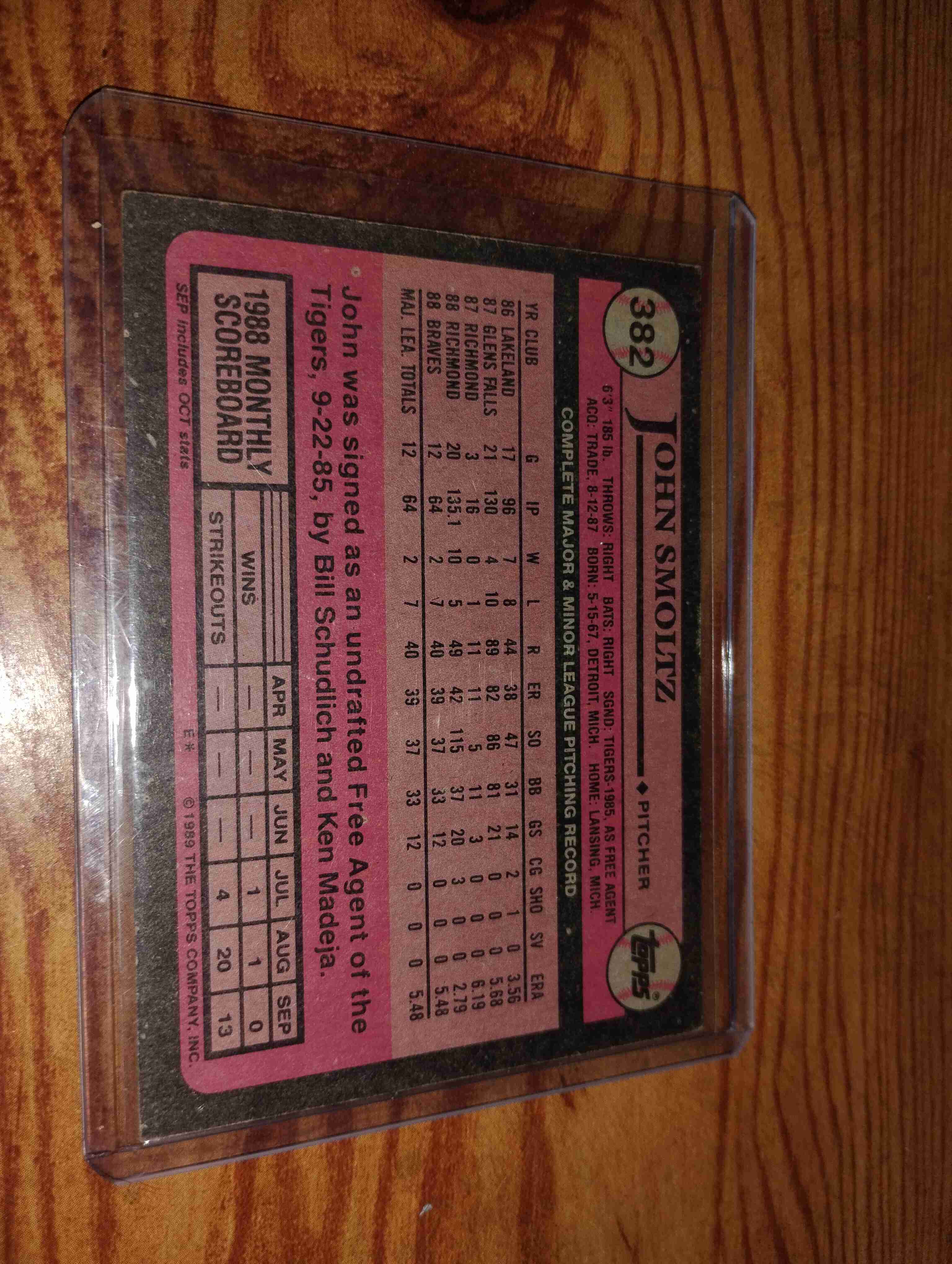 JOHN SMOLTZ 1989 TOPPS ROOKIE CARD #382