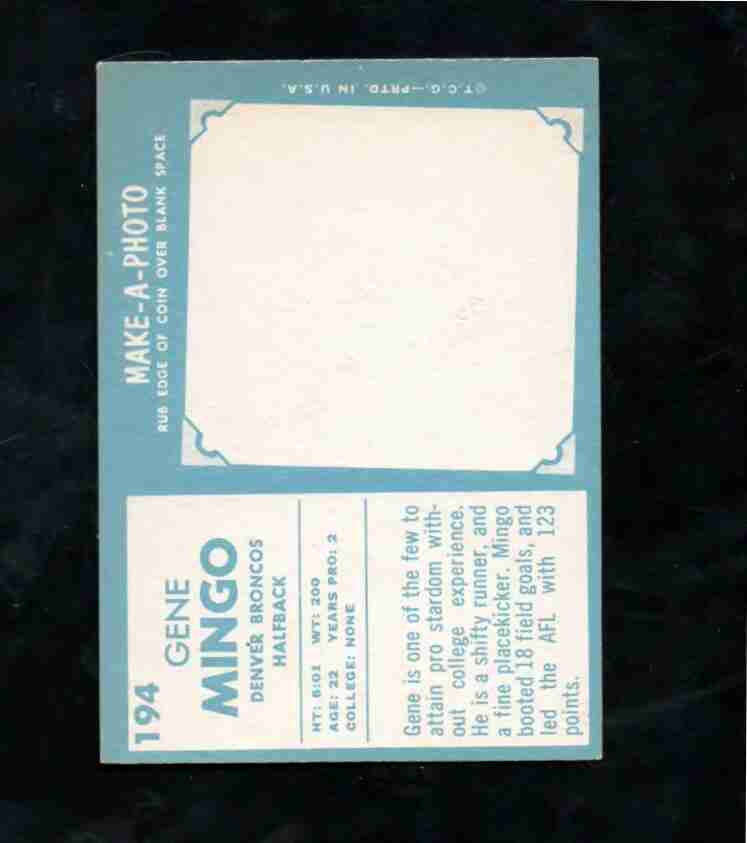 1961 Topps #194 GENE MINGO Denver Broncos