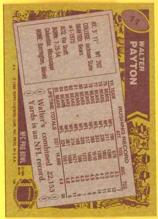 Perfect for player collectors, Bears fans, or anyone building the 1986 Topps set.
