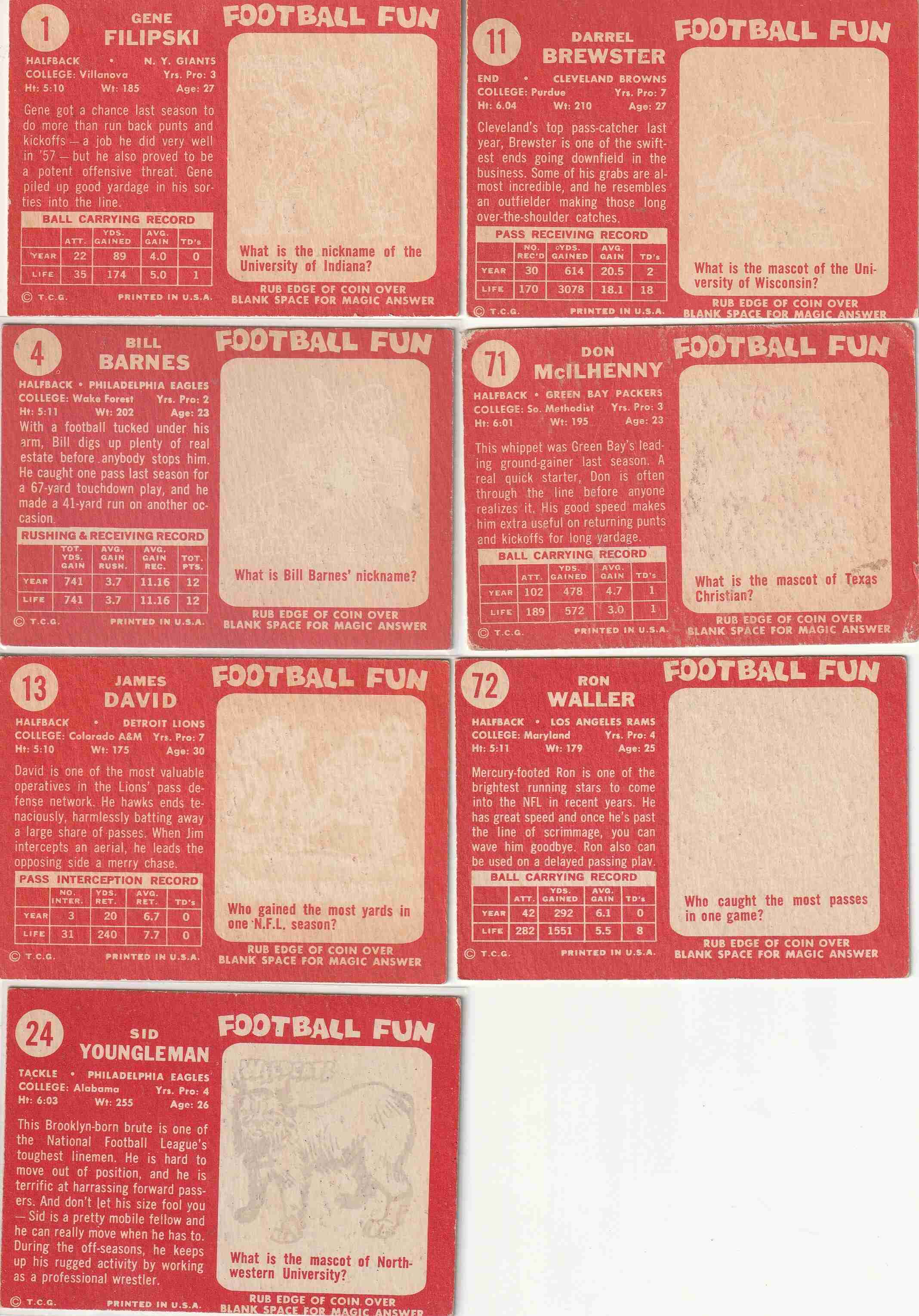 7-1958 Topps Football Lot 1