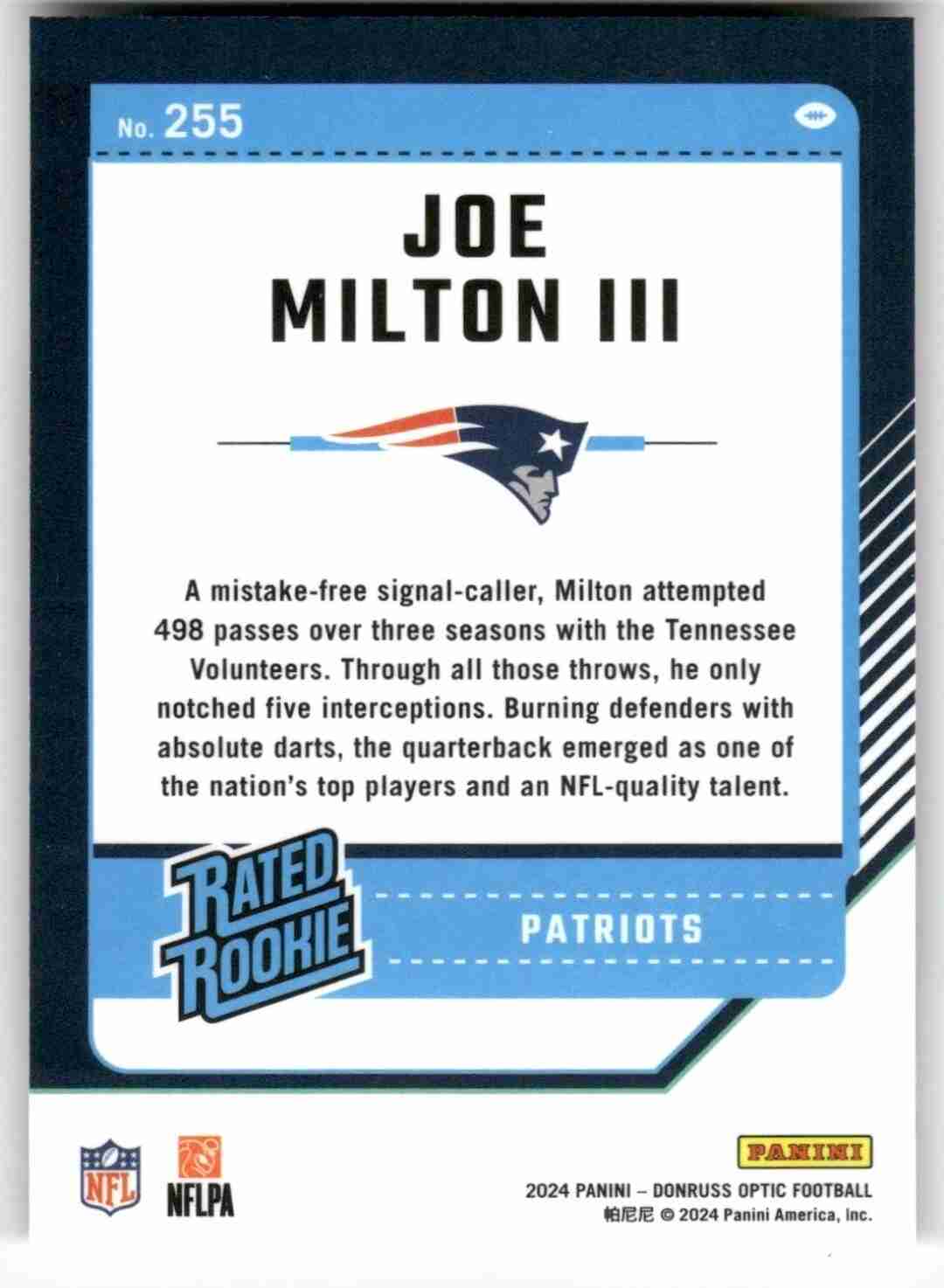 2024 Donruss Optic Rated Rookie Joe Milton III #255