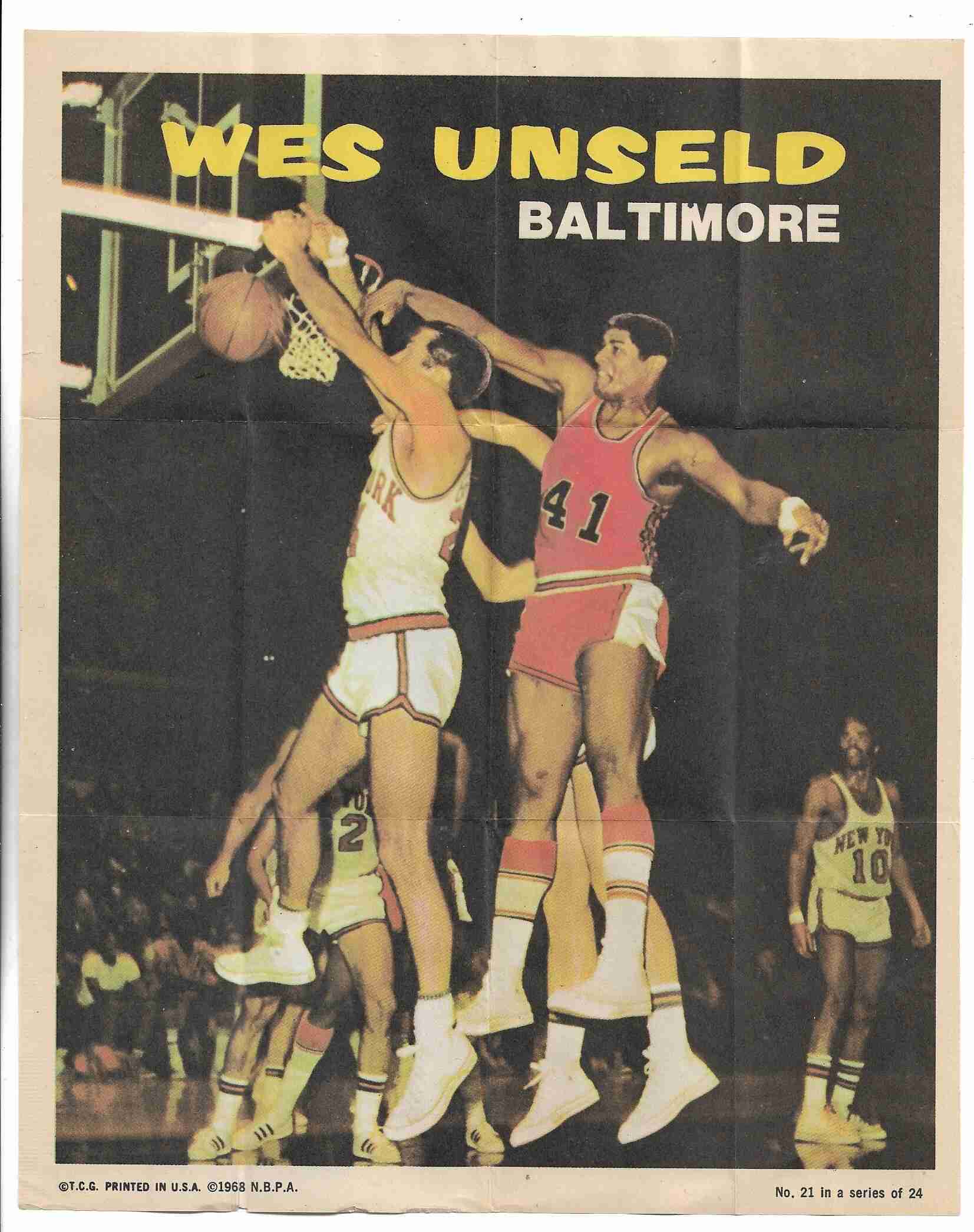 1968 Topps Posters #21 ~ Wes Unseld Baltimore Bullets HOF